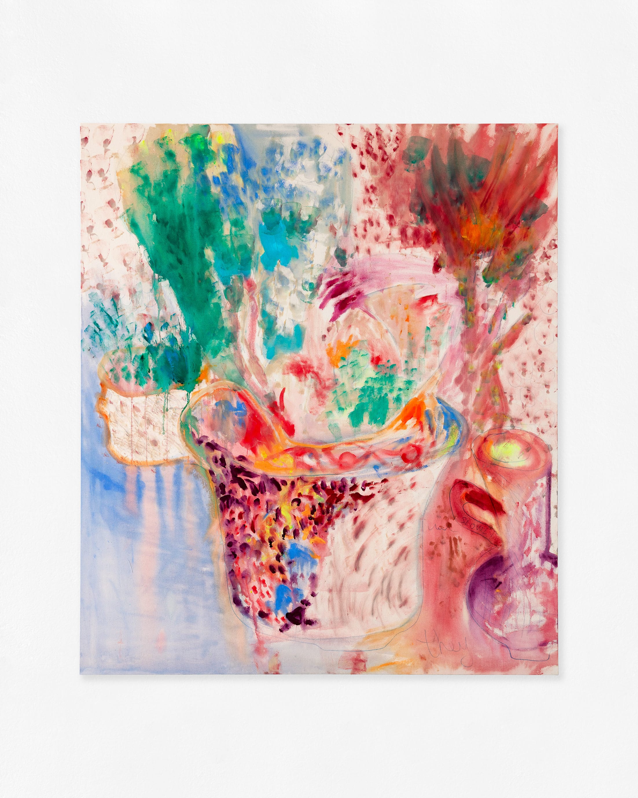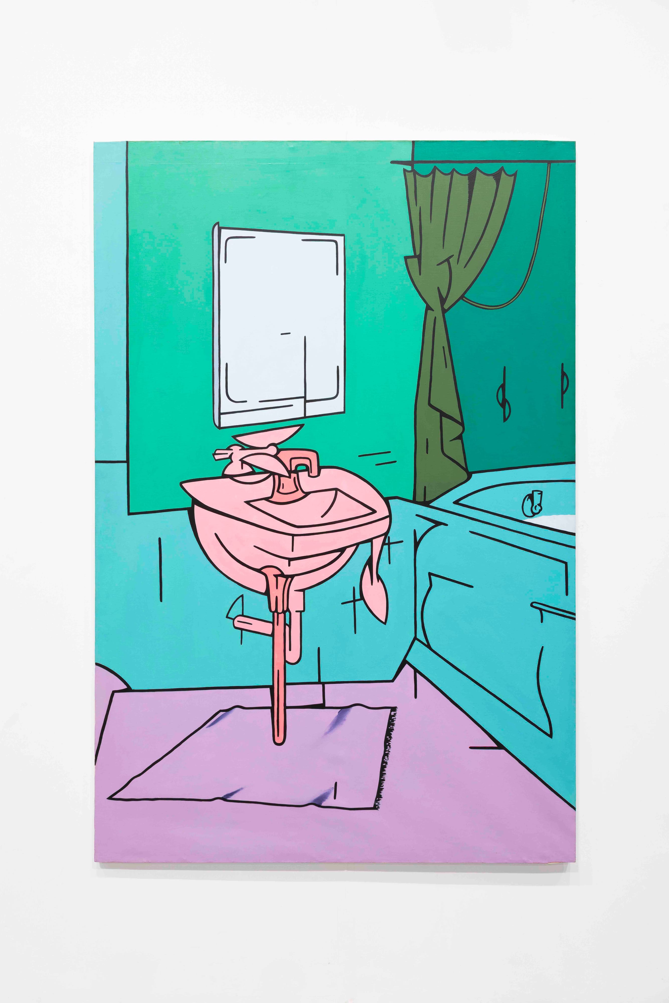 Marker, pen, acrylic paint, and oil on canvas