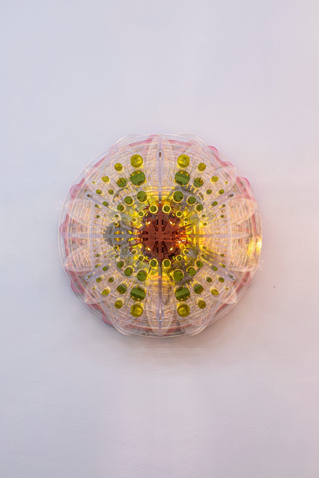 Painted PTG plastic, mixed media, alcohol inks, birch, aluminium and ligh