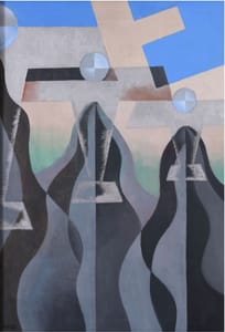 L’esposizione propone un percorso attraverso momenti significativi della produzione dell’artista, dagli anni Trenta fino alle ricerche più mature, restituendo la complessità di una poetica fondata sull’equilibrio tra dinamismo futurista, costruzione geometrica e tensione cromatica, sempre orientato su “scenari ultraterreni”.