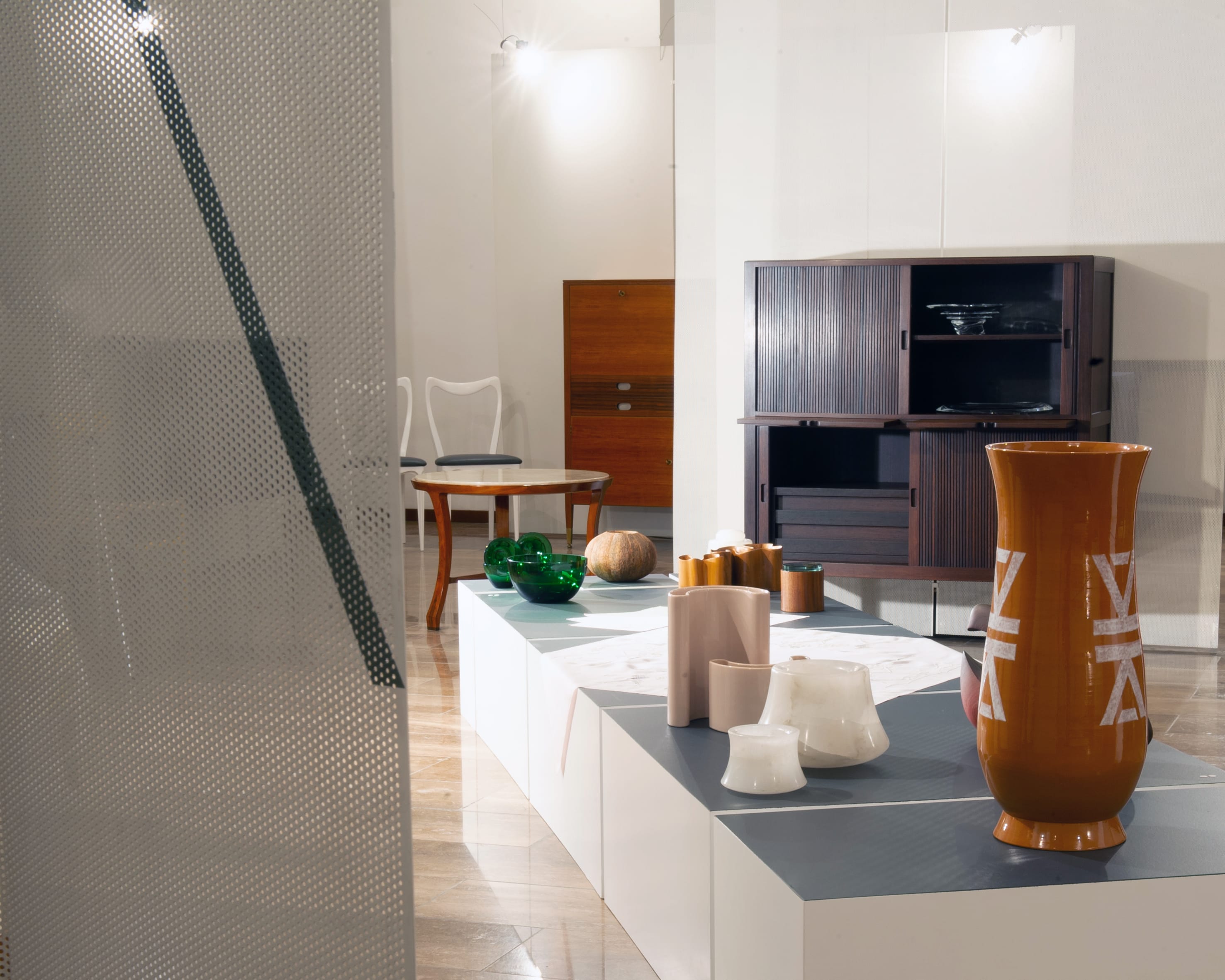 The Eredi Marelli historical department borns in 2006, operating indipendently and synergistically into a wider reality rised in Cantù in 1934. The exhibition and research activity is focused on the “handcraft & design” of the XXth century. It is a period in which the wonderful match between the architects ideas and the most sophisticated processing, the techniques and the use of materials of the Italian handcrafts is born and has developed. Therefore there is space for non-serial, innovative and elegant objects, mostly made on commission, but also and above all space for stories of people, designers and handcraft that are localized in territories, a real peculiar characteristic of this our Country.