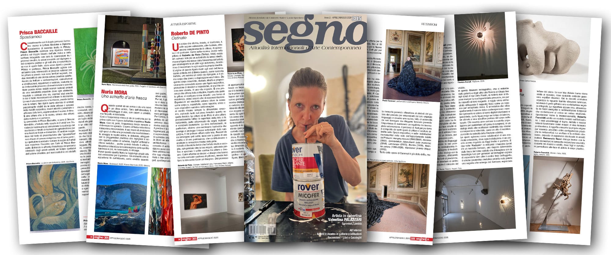 www.salaeditori.eu/prodotto/segno-278/ Acquista online l'ultimo numero www.rivistasegno.eu/abbonamenti ABBONAMENTI Fondata da Lucia Spadano e Umberto Sala, spinti dalla volontà e dal desiderio di svolgere una cronaca e una critica appassionata e vera, intorno a quei linguaggi espressivi dell’arte contemporanea che, dal concettuale al poverismo, dall’incorporeo al ritorno alla figura, stavano radicalmente modificando la scena dell’arte italiana e internazionale nel giro strettissimo di pochi anni, ha iniziato la sua pubblicazione nel 1976 a Pescara nel novembre. La rivista in passato ha istituito il premio Segno d’oro, una scultura realizzata appositamente in cinque esemplari da Luigi Ontani, consegnato all’interno di Arte Fiera Bologna a Costas Varotsos nel 2007 e allo scultore Nunzio nel 2012. Nel corso degli anni, inoltre, la redazione della rivista ha collezionato oltre 30.000 cataloghi di mostre in Italia e nel mondo, oggi in fase di catalogazione al fine di rendere questo patrimonio accessibile al pubblico attraverso il progetto http://biblioteca.rivistasegno.eu Da marzo 2025 la rivista viene pubblicata anche in Spagna. L'edizione spagnola, segno.es, segue il panorama dell'arte contemporanea nella penisola iberica dalla sede di Palma di Maiorca. Segno, annoverata fra i più autorevoli prodotti editoriali di settore, nella sua quarantennale storia vanta i prestigiosi contributi dei più importanti e stimati storici e critici dell’arte fra i quali Filiberto Menna, Rossana Bossaglia, Achille Bonito Oliva, Pietro Marino, Paolo Balmas, Gillo Dorfles, Marco Meneguzzo, Demetrio Paparoni, Gabriele Perretta, Marco Scotini, Marisa Vescovo, Giorgio Verzotti per citarne solo alcuni.