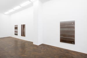 Solar power then again feeds an electrochemical reaction, which creates imagery in Series of Electric Shocks (2021). Molecule by molecule, copper deposits and layers form on stainless steel plates, the application of which evokes an expressive, painterly character. An analogy opens up to the painting process: just as this is often related to the lighting conditions, e.g. in the studio, the formation of these photovoltaic images is also dependent on light.